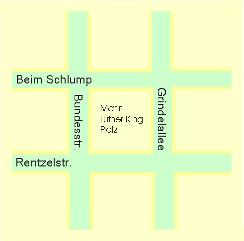 Martin-Luther-King-Platz oder Nebenstraßen der Bundesstraße.