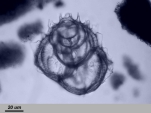 The processed material contains a high quantity of Foraminifers, mainly of Globigerina-type, and many other species; in addition there are Radiolarians and some examples of Silicoflagelates and sponge spicules. Diatoms are absent.