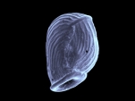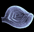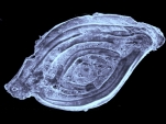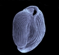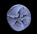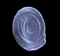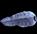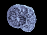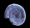 This well preserved foraminifer was found in the Carbon formation of Indiana (USA). It lived about 360 million years ago! | |
