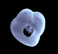 Foraminifers are marine protists (albeit usually with many nuclei). The vast majority of them are benthic organisms, but is it not necessary to collect samples by dredging. The tests can be found at beaches at the high water mark and can easily be collected. Fossil species can be found in sediments of the tertiary era and in abundance in cretaceous rocks. In both cases the isolation of the tests is easy. Usually foraminifers are investigated with a stereo microscope (first series of images). The SEM-pictures given here are much more impressive, but to identify species the use of the microscope is far more preferable. Generally speaking, foraminifers are particularly recommended to be investigated by amateurs!
