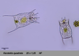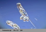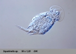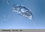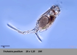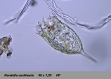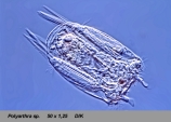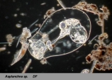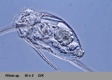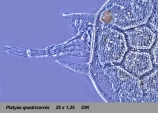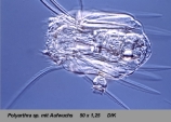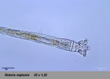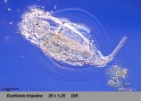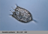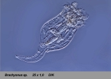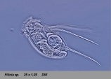 Rotatorien ("Rädertiere") sind die wohl schönsten tierischen Organismen, die man als Amateur mit dem Mikroskop untersuchen kann. Sie alle besitzen am Vorderende ein Paar ausstülpbare Läppchen, die mit Cilien besetzt sind. Durch den koordinierten Schlag dieser Cilien entsteht der Eindruck zweier sich drehender Rädchen - daher der Name. Dieses "Räderorgan" strudelt Nahrung heran, bei planktischen Formen dient es zudem der raschen Fortbewegung. Schon bei geringsten Störungen wird das "Räderorgan" eingezogen.