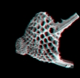 At least there is the option to merge the two stereo images to get an anaglyph looked at with anaglyph goggles (red filter assigned to the left eye). But whereas the methods given above even work with colour images, in this case the stereo images must be converted to gray scale images first, then they are stained red and bluegreen (=cyan) respectively and merged. Many image processing programs have a special routine which stains and merges the images in one step. It is noteworthy that the amount of shift between the two images has no effect on the shape of the object, it only defines how far the object will hover in front or behind the screen (Fig.5). Viewing the anaglyph makes no problems, but by merging the two images a certain loss of quality is unavoidable, especially in case of delicate textures in the midth of the anaglyph. So the methods given above are preferable.