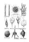 Der wohl berühmteste Zeichner unter den Biologen war Ernst Haeckel, der 1899 eine wunderschöne Sammlung biologischer und mikroskopischer Zeichnungen unter dem Titel "Kunstformen der Natur" veröffentlichte (als Reprint unter ISBN 3-7913-1979-5, bei Prestel erhältlich). Wir zeigen hier zwei Tafeln, die Radiolarien und Foraminiferen darstellen. Schon damals warf man Haeckel vor, er habe beim Zeichnen zu sehr idealisiert, zumal man Radiolarien im Mikroskop niemals mit der Tiefenschärfe zu sehen bekommt wie auf seinen Zeichnungen. Doch das Raster-Elektronenmikroskop hat Haeckel nachträglich Recht gegeben - seine Zeichnungen nehmen in diesem Falle REM-Aufnahmen geradezu vorweg. Aber auch Amateure fertigten liebevoll Zeichnungen an: Die Tafel ganz rechts wurde von Detlev Rühman erstellt, einem der Gründer der MIKRO.