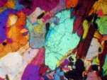Wir beschränken uns jedoch nicht nur auf die Untersuchung pflanzlicher und tierischer Objekte: Bild 15 zeigt einen selbst gefertigten Gesteinsdünnschliff im polarisierten Licht, und die Bilder 16 und 17 geben Kristalle wieder, die unterm Mikroskop gezüchtet wurden.